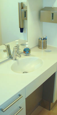 haben wir einen Prohylaxe-Raum eingerichtet. Hier findet der Patient alles, was er zum Zähneputzen benötigt.